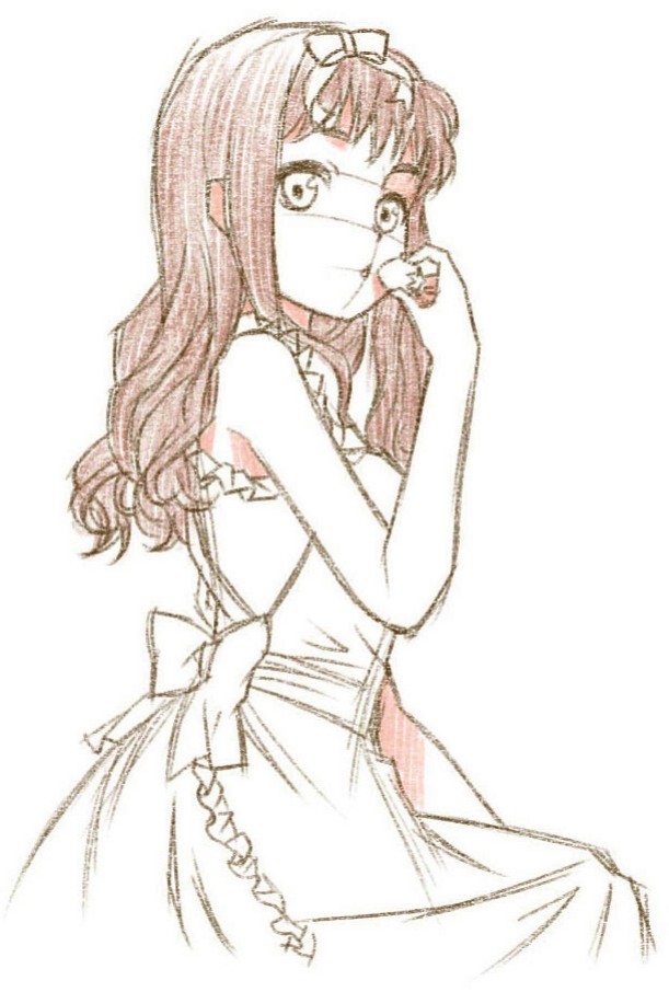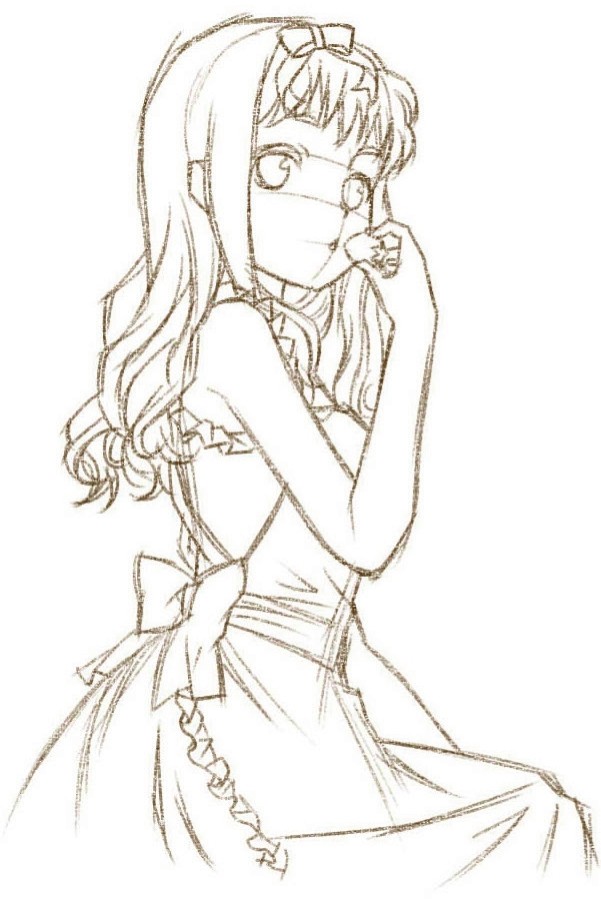 6 最后用浅灰色画出白色围裙的褶皱,注意裙子上褶皱的疏密变化。