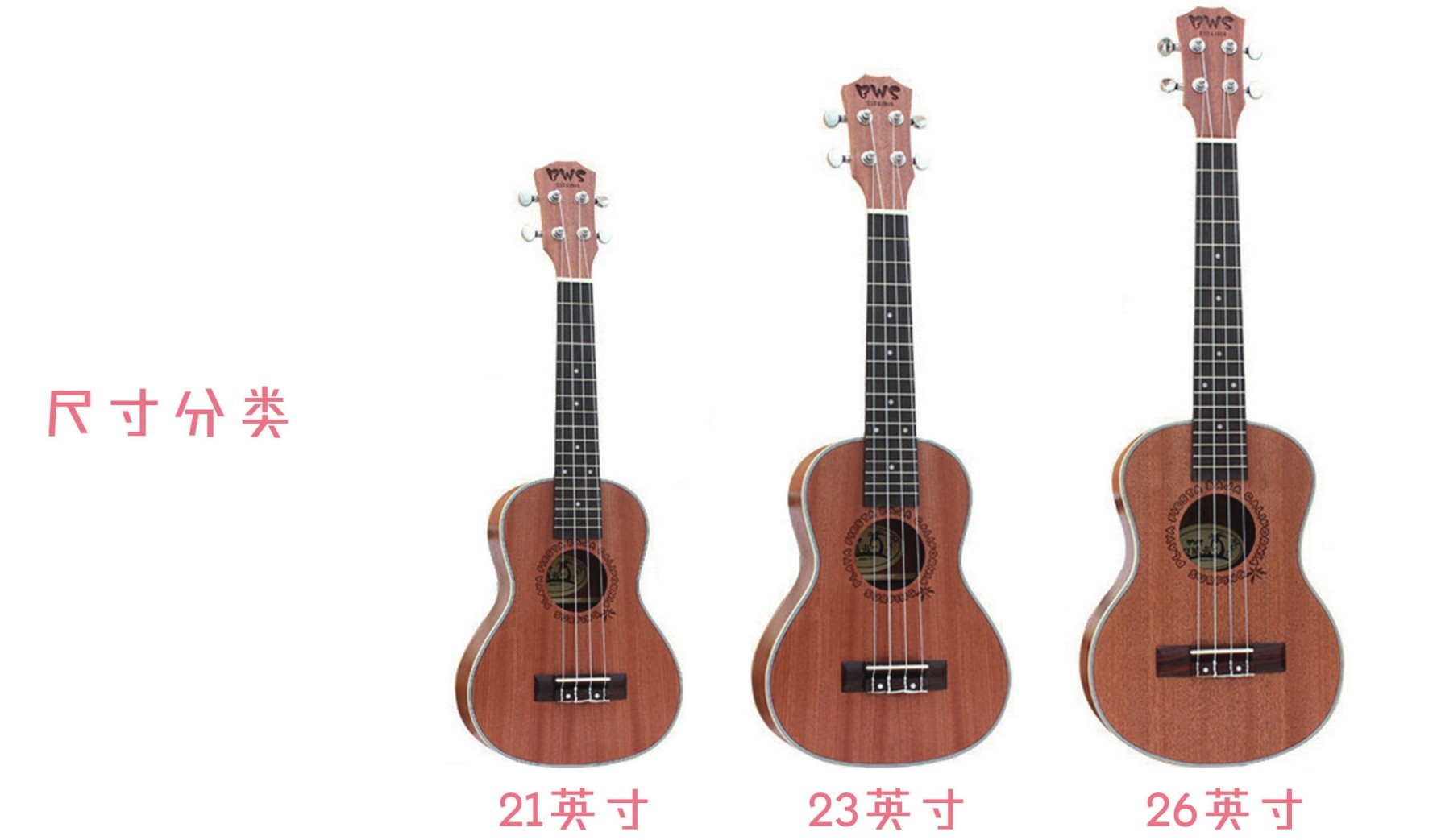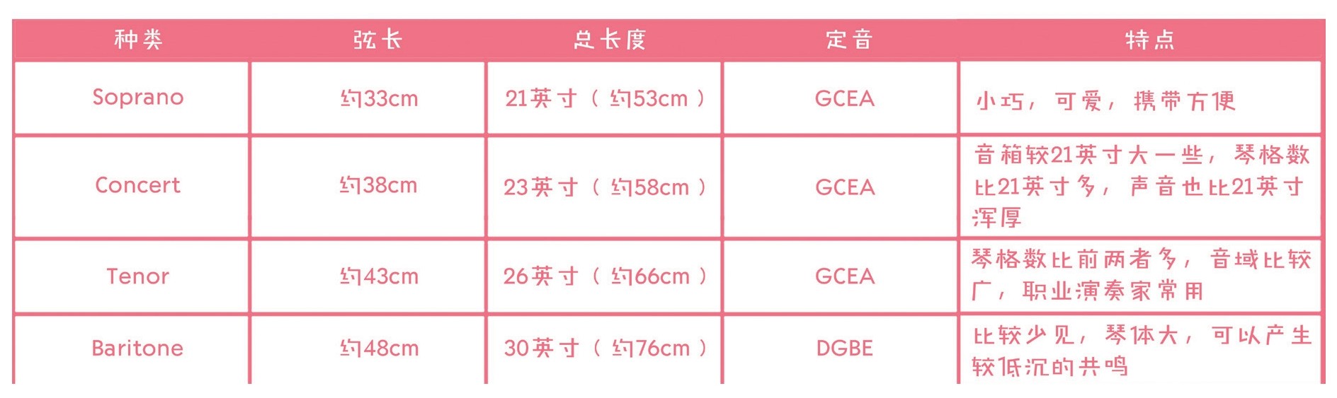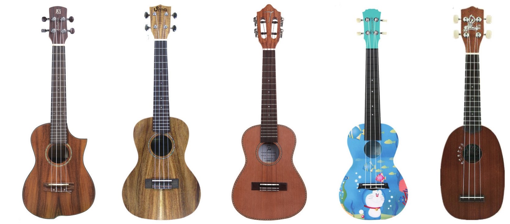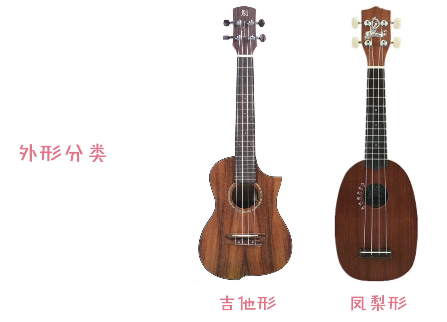 尤克里里通常从两个方面来分类,一是外形,二是尺寸。