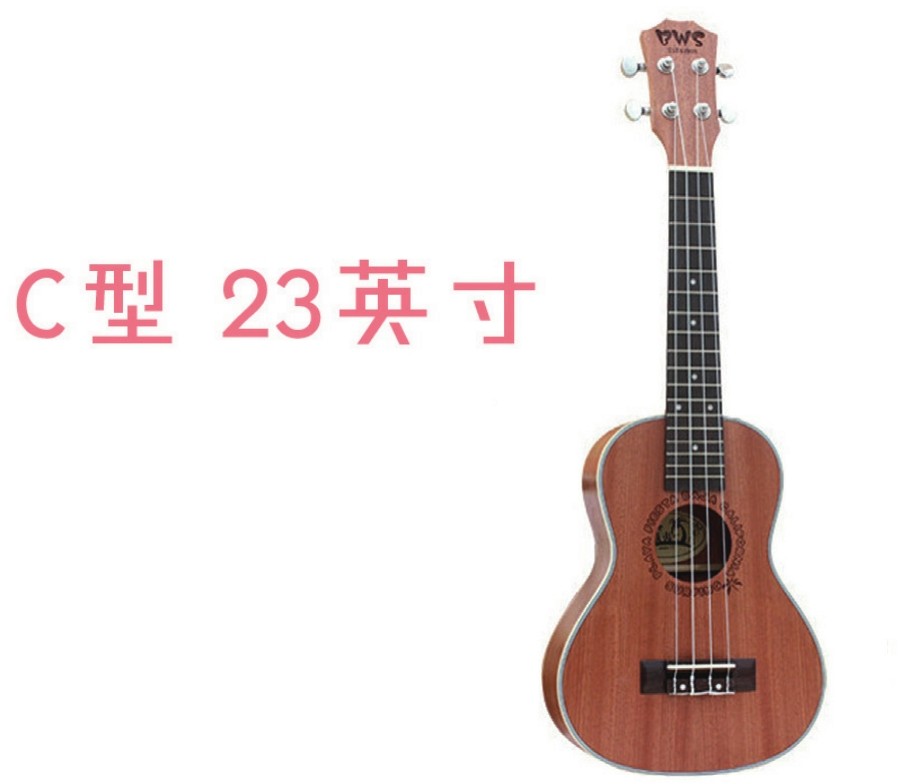 由于S型琴品格较少,且不方便演奏的缺点,因此出现了大一号的C型琴。它的琴长一般在23英寸左右,有着更大的琴体,更多的品格和更长的琴颈,S型的一系列缺点都被弥补了,用C型尤克里里演奏的时候手指也可以更加舒展。不过S型原有清脆明亮的音色也会打折扣,C型的音色通常更加厚重,价格也会比S型稍微贵一些。