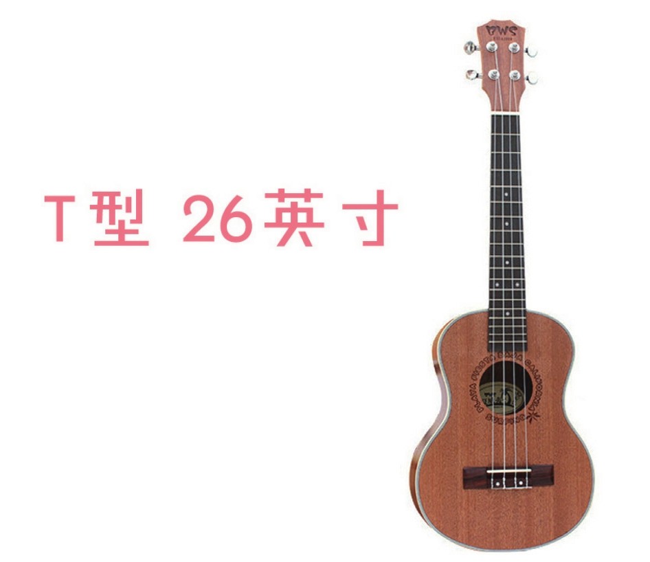 T型是标准调音里最大尺寸的尤克里里了。一般琴长26英寸,拥有比S型和C型更多、更大的品格,比较适合演奏旋律更丰富的独奏曲。在T型尤克里里的指板上你的手指会更加自如。T型尤克里里的音色更加厚重,价格也比S型和C型要贵。