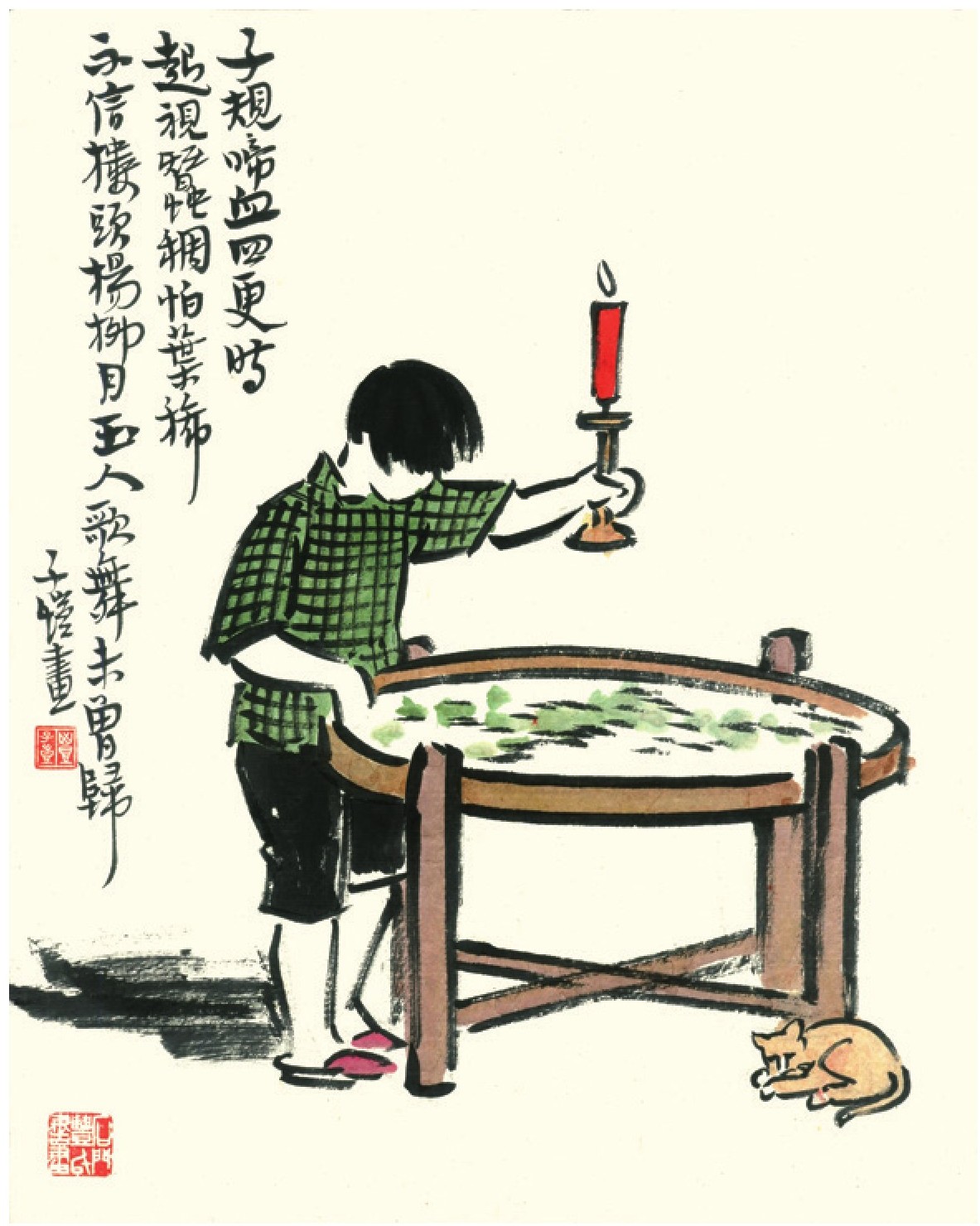 丝做好后,蒋五伯口中唱着“要吃枇杷,来年蚕罢”,收拾丝车,恢复一切陈设。我感到一种兴尽的寂寥。然而对于这种变换,倒也觉得新奇而有趣。