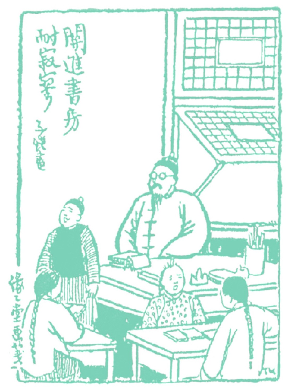私塾里不讲时间,因为那时绝大多数人家没有自鸣钟。学生早上入学,中午“放饭学”,下午再入学,傍晚“放夜学”,这些时间都没有一定,全看先生的生活情况。先生起得迟的,学生早上不妨迟到。先生有了事情,晚上就早点“放夜学”。学生早上入学,先生大都尚未起身,学生夹了书包走进学堂,先双手捧了书包向堂前的孔夫子牌位拜三拜,然后坐在规定的座位里。倘先生已经起来了,坐在学堂里,那么学生拜过孔夫子之后,须得再向先生拜一拜,然后归座。座位并不是课桌,就是先生家里的普通桌子,或者是自己家里搬来的桌子。座位并不排成一列,零零星星地安排,就同普通人家的房间布置一样。课堂里没有黑板,实际上也用不到黑板。因为先生教书是一个一个教的。先生叫声“张三”,张三便拿了书走到先生的书桌旁边,站着听先生教。教毕,先生再叫“李四”,李四便也拿了书走过去受教……每天每人教多少时间,教多少书,没有一定,全看先生高兴。他高兴时,多教点;不高兴时,少教点。这些先生家里大都是穷的,有的全靠学生年终送的“修敬”过日子。因此做教书先生,人们称为“坐冷板凳”,意思是说这种职业是很清苦的。因此先生家里柴米成问题的时候,先生就不高兴,教书也很懒。