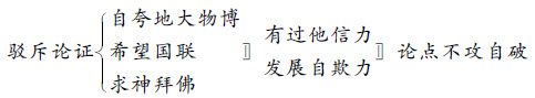 第二,创弟老师的这堂课抓住了重点,逻辑性很强。由于年代久远,这篇文章在文字上有些艰涩,但通过多次朗读,学生对于文本的理解就比较通透了。创弟老师巧妙地运用了“以读代讲”的方式,让学生理解了文章内容。在这个前提下,创弟老师抓住重点进行第二步教学。他先让学生找出对方的论点及论据,再让学生找出己方的推断及观点,层次分明,条理清晰。众所周知,学习议论文的要点是要明白文章的论点、论据及论证方法。由于这是一篇驳论文,因此文章会有两个论点。创弟老师紧紧抓住对方论点和己方论点展开分析,让学生找出对方论点的错误,再找出己方论点的依据。虽然因只是第一课时的关系,己方论点尚未展开探究,但从第一个环节来看,课程的设计是很有条理的。