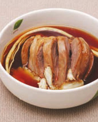 3.将川贝母、银耳置入梨心,并加满清水,置于碗盅里移入电饭锅内,外锅加1杯水,蒸熟即可吃梨肉、饮汁。