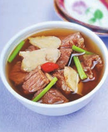 【食材】牛肉600克,枸杞子5克,香芹50克,盐3克。