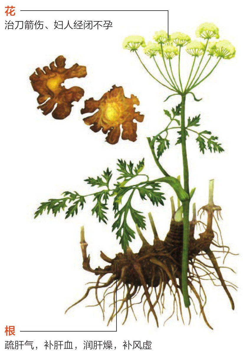当归又名乾归、白芹、山芹。据说在西周时,一个新婚的青年男子上山采药,他对妻子说三年会回来,其妻等了他三年,也不见回来,最后得了气血亏损的妇女病,不得不改嫁。谁知后来年轻人回来了,妻子说三年当归你不归,我已改嫁,年轻人后悔不已,但仍用自己采的药治好了女人的病。后将此药命名为当归,以吸取自己当归不归的教训。