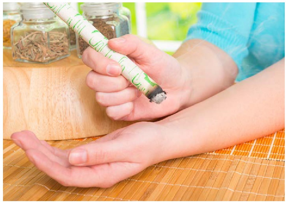 “灸”字,《说文解字》作“灼”字解释,是灼体疗法的意思。艾灸法是用艾绒或辅以其他药物放置在体表的穴位上或患处烧灼温熨,借灸火的温和热力或药物的作用透入肌肤,通过经络的传导作用,深入脏腑,温通经络,调和气血,扶正祛邪,达到防病治病和保健强身目的的一种外治疗法。