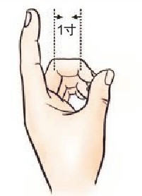 2.拇指同身寸:拇指第一关节的横度为1寸。适用于四肢部取穴的直寸。