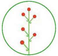 花轴缩短,大多数花着生在花轴的顶端。每朵花有近于等长的花柄,从一个花序梗顶部伸出多个花梗近等长的花,整个花序形如伞,称伞形花序。每一小花梗称为伞梗,如报春、点地梅、人参、五加、常春藤等。