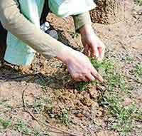 采摘野菜时要用手从根部掐下,把菜根在地上擦一下,以防止水分散失和发生化学反应。