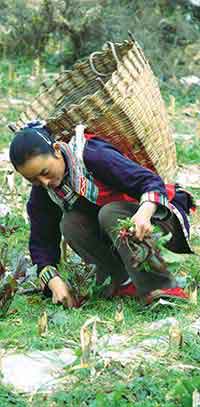 采下的野菜如果一直握在手中,很容易因体温而发生变形或凋萎,因此应该放在垫有青草的筐中,不能按压。