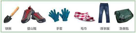 其次要随身携带毛巾、急救箱、雨具等小物品。毛巾用来擦汗,旧报纸可以包装野菜,丝带尼龙绳可以捆绑,还有食物和水。最后要注意采集工具,虽然许多幼嫩的野菜和野果都可以徒手采集,但适当的小工具会有意想不到的用处。比如小铁锹可以采挖野菜根茎的药用部分,小剪刀可以剪取一段植物的某个特定食用或药用部分等。