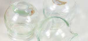 玻璃罐采用玻璃制成,有大、中、小等不同规格。罐如球状,口平底圆,口小肚大,口边稍厚、略向外翻而光滑。玻璃罐多用火力排气,特别适用于走罐及针刺后拔罐。其优点是造型美观、质地透明,可直接观察罐内皮肤的淤血程度及出血情况,便于掌握拔罐时间;缺点是导热快、易烫伤、容易破碎。