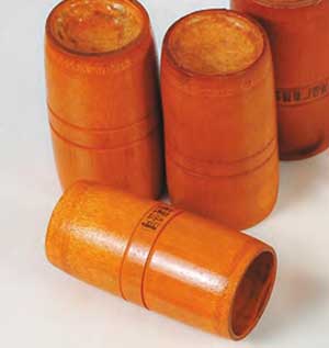 竹制火罐因用火力排气,故须选取坚实成熟的老竹子来制作。成熟的竹子材料质地坚实,经得起火烤而不变形、不漏气;竹制水罐因要用水或药液煮罐,用水蒸气排气,要选择尚未成熟但也不青嫩的、质地坚实的竹子制作。