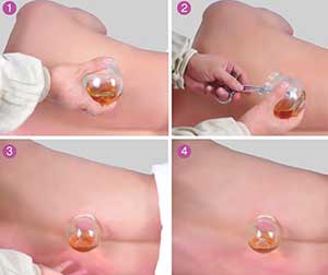 这种疗法在发挥拔罐疗效的同时,罐子里的温水可增强对局部的刺激,从而加强拔罐温经散寒的功效。由于小抽气罐的体积小,比较适合在头颈部、手部等狭窄部位拔罐,但吸附力较弱,若配以温水,刺激就会大大增强,局部的治疗效应就更明显,并可以缩短治疗时间。温水罐法较适宜于局部寒冷不温、虚寒和寒盛类病症,通过水的温度能进一步促进经气的畅通。另外,对于老年人和皮肤干皱者,用温水法罐可润柔皮肤,减轻疼痛。