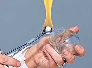 拔罐时,可采用浓度为75%~95%的酒精作为燃料,无酒精时也可用高度数的白酒代替。酒精的特点是热能高、火力旺,能迅速燃耗罐内空气,故负压大、吸拔力强,扣罐后火便速灭,不易烫伤皮肤。