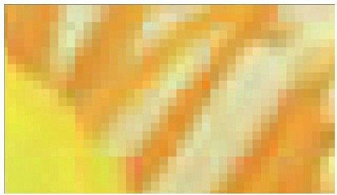 | 正常显示下的数码照片 | 放大显示后,我们可以看见像素的形态 |