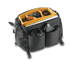 便携式三角包,携带轻便,不过只能放下一机一镜和存储卡、电池、滤镜等简单设备。