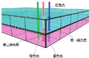 上下两层构造的双层测光感应器的第一感光层检测绿色光和蓝色光,第二感光层检测绿色光和红色光的色彩信息,通过识别被摄体的颜色能够有效抑制被摄体颜色对曝光的影响。而且即使在人造光源使被摄体颜色发生变化时也能够判断出准确的曝光。拍摄以往容易曝光不足的红色被摄体和逆光等难以判断曝光量的场景时,它都可有效地发挥作用。