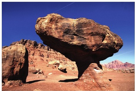 强烈阳光下拍摄风景,未用偏振镜拍摄的画面,色彩饱和度被降低,岩石的纹理细节变得不清晰;而使用偏振镜拍摄的画面,天空蔚蓝自然,山石细节清楚,在阴影的修饰下立体感十足