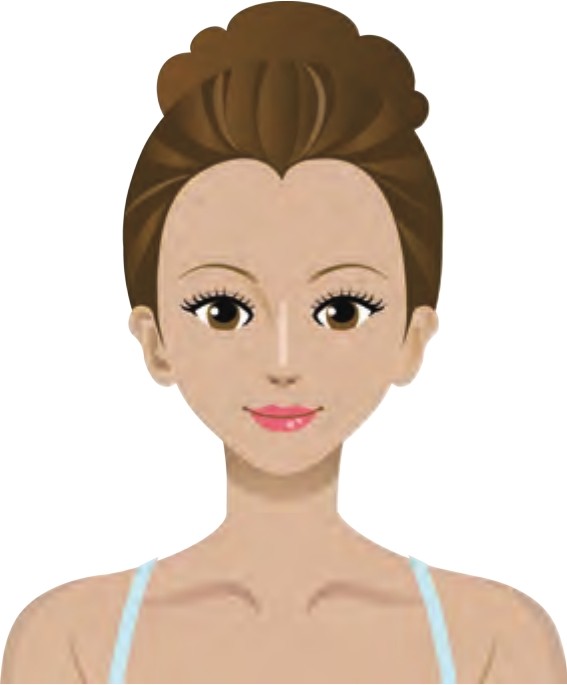 配色建议:用粉底的修饰功能打造出面部的白皙效果,可搭配大多数颜色的腮红。浅粉色、浅桃色和珊瑚粉色等低饱和度的腮红能很好地与粉底颜色互补,打造出粉嫩而健康的肤色,给人水润的感觉。颜色饱和度太高的腮红会令白皙的脸颊显得不自然。