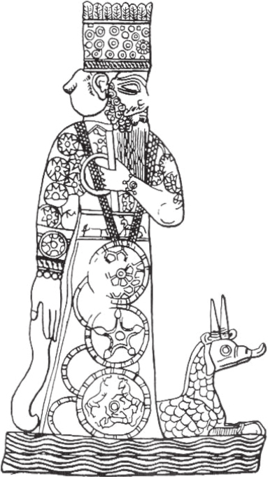 图1 古代巴比伦之神马杜克。马杜克被认为在摧毁了提亚玛特后创造了宇宙的秩序,而提亚玛特是原始混乱的代表,这张图中他被刻画为马杜克脚下的一只角龙。世界上许多神话都有这种秩序诞生于混乱的思想,而这种思想继续存在于现代科学宇宙学的某些部分中。