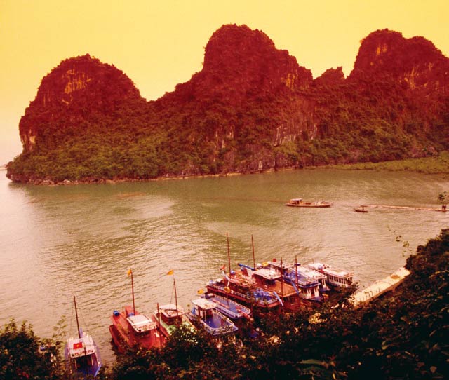 位于越南北部的下龙湾,碧波万顷的海面上,石灰岩岛若繁星密布,奇峰异洞,千姿百态。