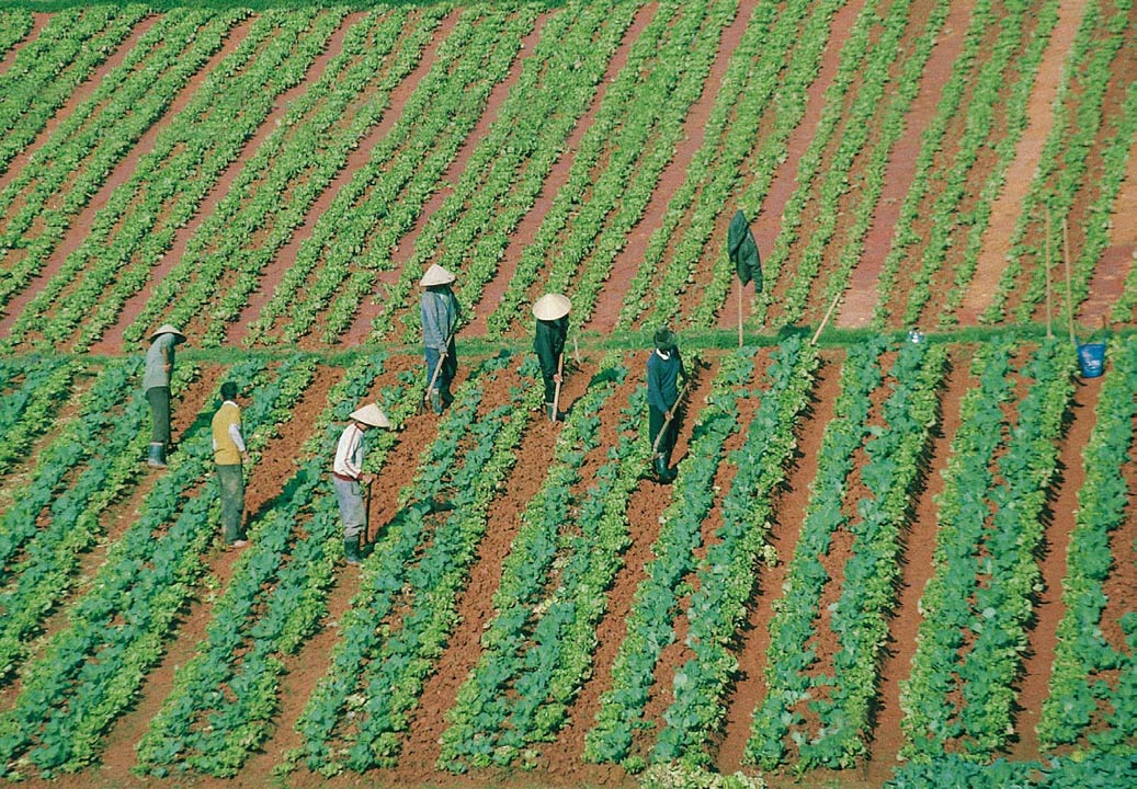 越南是一个农业国,农业产值占国内生产总值的40%,全国有可耕地面积525万公顷。人民主要从事粮食和经济作物的生产。粮食作物以水稻为主,杂粮主要有玉米、番薯、木薯。水稻和玉米的种植占耕地面积的86%,产量约占粮食总产量的84%。政府很重视提高农业生产效率,并取得了初步成效,但是缺乏农业生产设施和肥料阻碍了进一步的增长。水稻仍是主要农作物,但越南越来越多地依赖经济作物如茶、咖啡和橡胶来进一步发展经济。