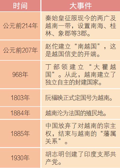 越南10世纪始建封建国家。1858年法国势力侵入。1874年越皇室和法签订和约,把南部割让给法。二次大战中越南又被日本侵占,1945年8月革命取得胜利,9月2日宣布独立,成立越南民主共和国。1945年9月法国重新入侵越南,越南人民进行了英勇的抗法战争。1954年5月越南人民取得奠边府战役的胜利,7月20日法国被迫签订日内瓦协议,越南北方(北纬17°以北)获得解放,南方仍由法国(后成立由美国扶植的南越政权)统治。越南南方人民又进行了抗美救国战争。1960年越南南方民族解放阵线成立。1973年1月越美在巴黎签订关于在越南结束战争、恢复和平的协定,同年3月美军撤出越南南方。1975年4月30日越南南方全部解放。1976年7月北方和南方统一,定国名为越南社会主义共和国。