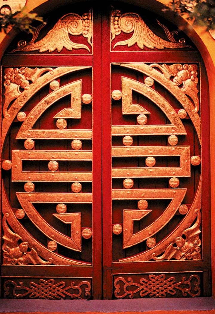 越南京族人的村庄大多建有一所祠堂,祠堂里敬奉着神像和各姓氏的祖先的牌位,这是一处祠堂极具中国色彩的大门图案。