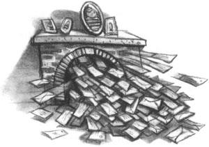 星期六,事态开始失控。二十四封写给哈利的信已设法进入德思礼家中。这些信是卷成小卷藏在两打鸡蛋下边,由毫不知情的送奶员从起居室窗口递给佩妮姨妈的。弗农姨父怒冲冲地给邮局、奶厂打电话找人说理。佩妮姨妈把二十四封信都塞到食品粉碎机里搅得粉碎。