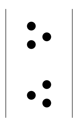无论是谁,看到上图,都会认为共有两组黑点,每组3个。造成这种印象的原因主要是,有些黑点间的距离比另一些黑点间的距离大。