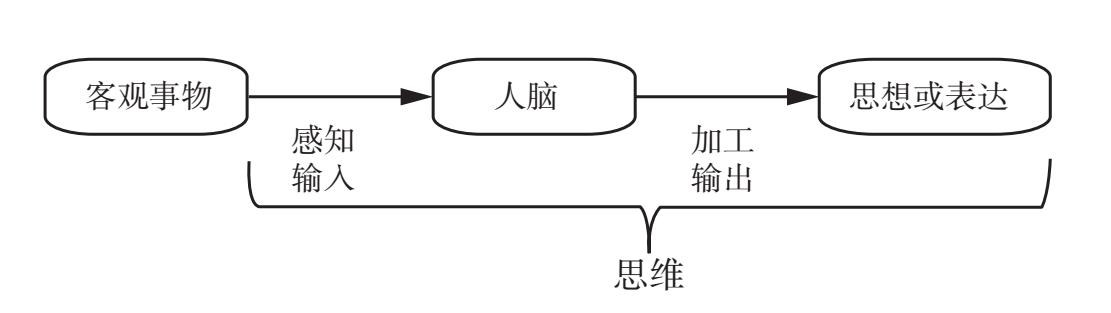 本章第二节里提到,思维就是指,大脑对通过各种感知方式输入的客观事物的信息主动进行加工,并最终在大脑中形成认识,或表达出来的一种过程,可以用图直观地展示出来。