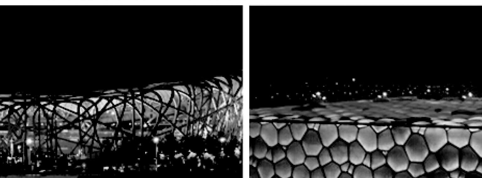 大自然中形形色色的结构也给我们带来了无限的遐想空间和创造灵感。在日常生活中,存在大量受到自然界中经典结构启发而创造的新事物,这些事物是美妙结构的延伸。本章开头所提到的鲁班发明的锯子就是一个很好的例子。我们熟悉的国家体育场“鸟巢”和国家游泳中心“水立方”也是特别典型的代表(如图1-2所示)。