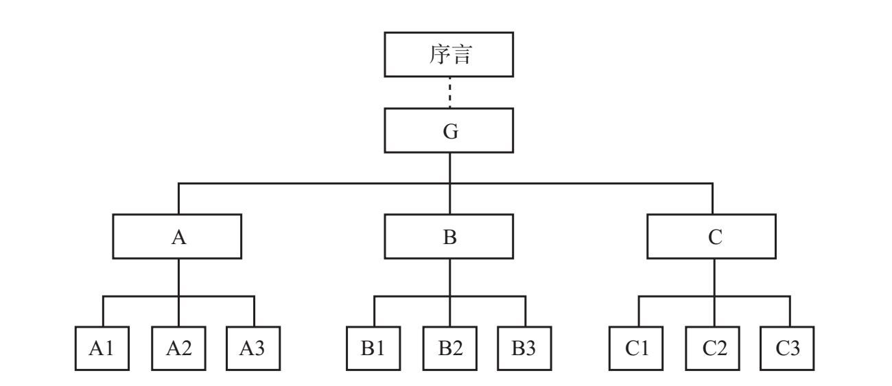 首先,如果领导给了一个题目让我们去写报告,可以想想,这是不是特别像遇到一件事情要怎么处理。根据标准结构图,报告的题目就是标准结构中的G。接下来,只要想办法去找下一层级中的A、B、C,找到A、B、C之后再考虑其中的A1、A2、B1、B2等就好了。至于怎么找A、B、C,后文会进行详细说明。