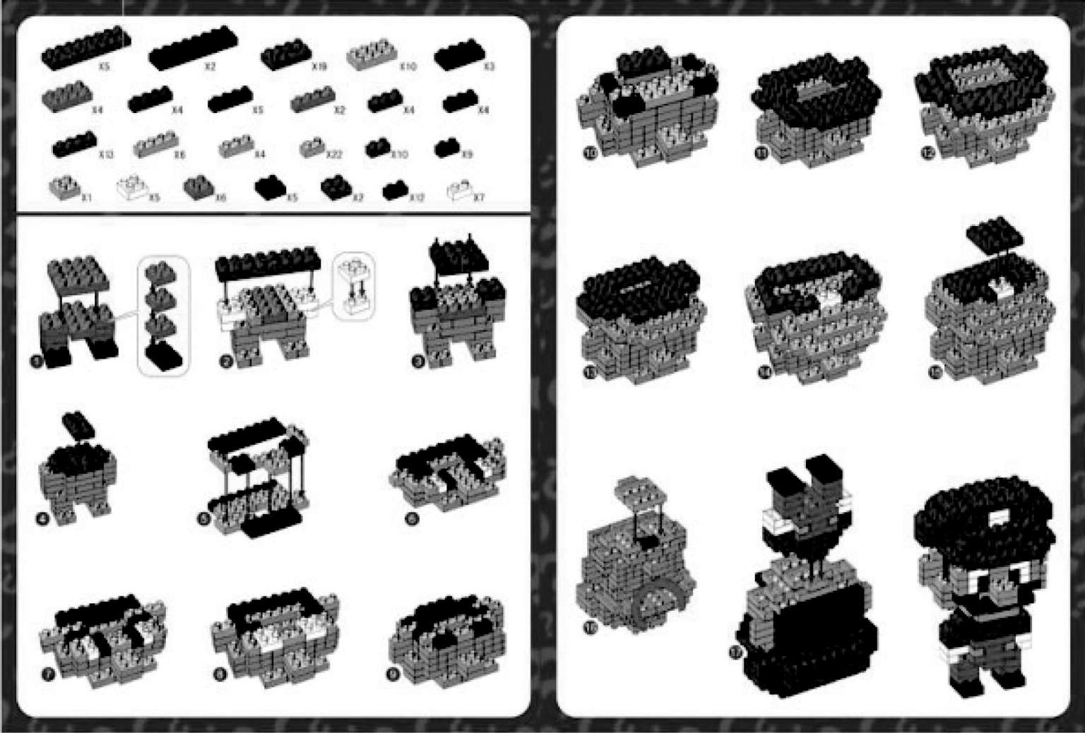 一般情况下,所购买的积木里面都是有图纸可以参照的,按照图纸,一步一步拼接,就可以呈现出一个相对完美的结果。积木越多越小,可能拼接的难度就越大,对于结果呈现的要求也就越高,于是就更需要图纸的帮忙,否则面对那么多的小积木(如图1-18所示),只能面露难色,束手无策。
