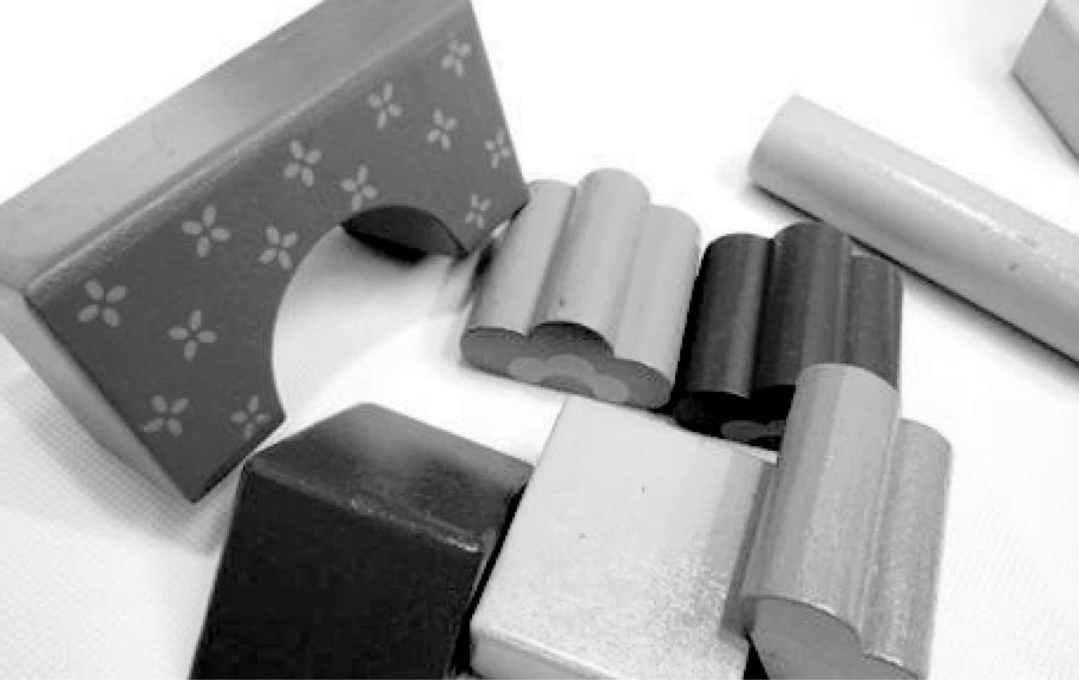 本章第一节曾提到,结构可以定义为事物的各个组成部分之间的有序搭配或排列。事实上,积木就是这样的,起初只是很多大小不一、形状各样、颜色不同的小积木,有正方形、圆形、圆柱形、三角形、半圆形等(如图1-15所示),这些都是搭建房子、桥梁、小人、动物等的基础。有了这些组成部分,才能搭建起想要的整体。