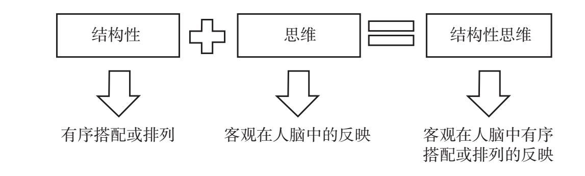 “结构性”本身在词典当中找不到相应解释,但是它可以看作“结构”的形容词形式,进而从“结构”的意思中推导出其含义。既然“结构”是指事物的各个组成部分之间的有序搭配或排列,那么“结构性”就是指整体的各个组成部分之间的搭配或排列是有序的。而“思维”的定义在上文中已经提及,即其是具有意识的人脑对客观的反映。