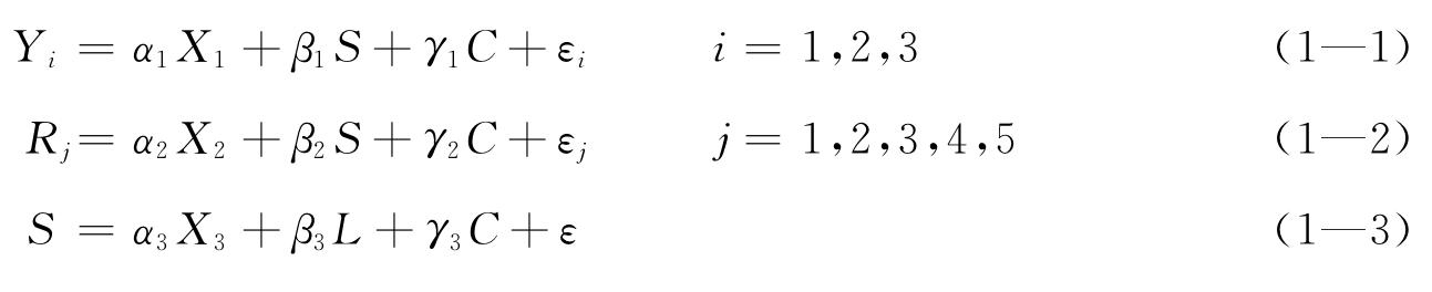模型设定旨在说明以下问题:①不同国家社会信用文化和金融结构的差异是否会对金融业运行效率产生影响? ②不同国家金融业组织形式(混业经营程度)的选择是否会受到金融结构和社会信用文化的影响? ③不同国家金融结构的选择主要受到哪些因素的影响? ④新兴市场国家的社会信用文化、金融体系结构和金融业组织形式及其内在联系是否具有某些特殊性?