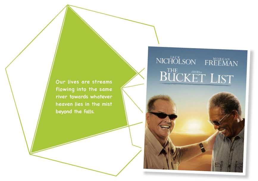 这部影片由美国两大老戏骨摩根·弗里曼(Morgan Freeman)和杰克·尼克尔森(Jack Nicholson)出演,讲述了两位癌症晚期的老人在余下的日子里如何度过丰富和欢乐的人生的故事。