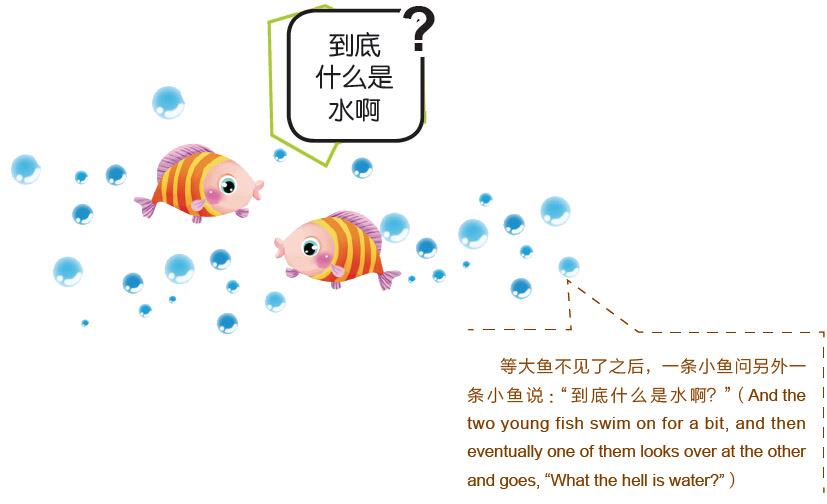 看到这里,你是不是也同我一样,对此感到很吃惊:小鱼对于自己赖以生存的水环境竟然浑然不觉?!其实,你我何尝不是这样的鱼呢!