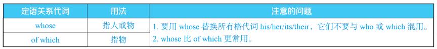 另外,我们还注意到,关系词whose主要是相当于第三人称形容词性物主代词,这是因为第一人称或第二人称代词一般不会带有定语从句。