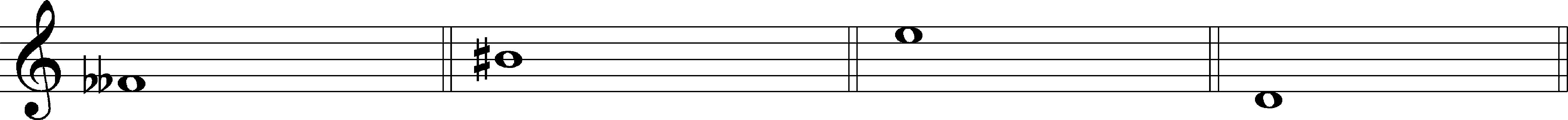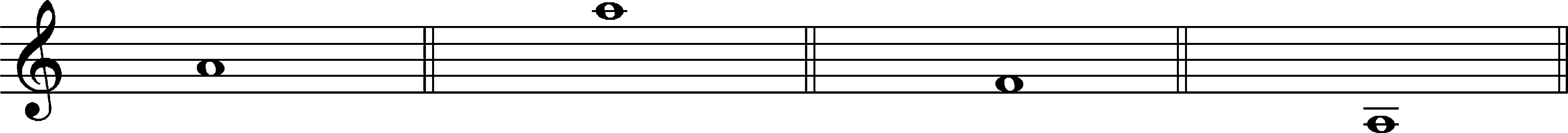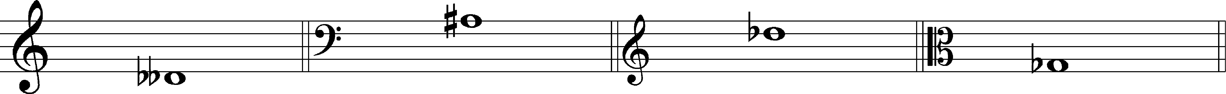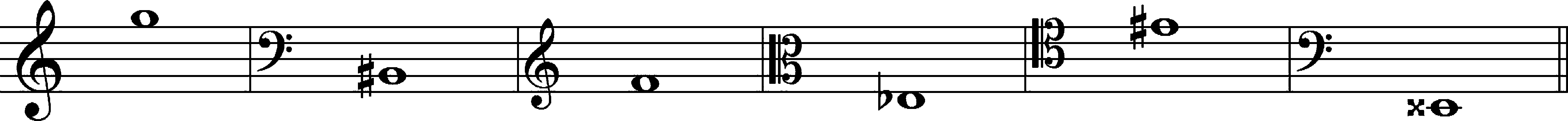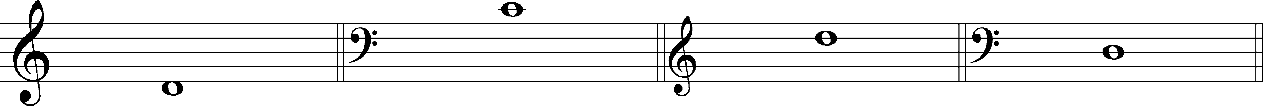 2.将下列各音不改变其顺序,用全音符标记在规定的谱表上。