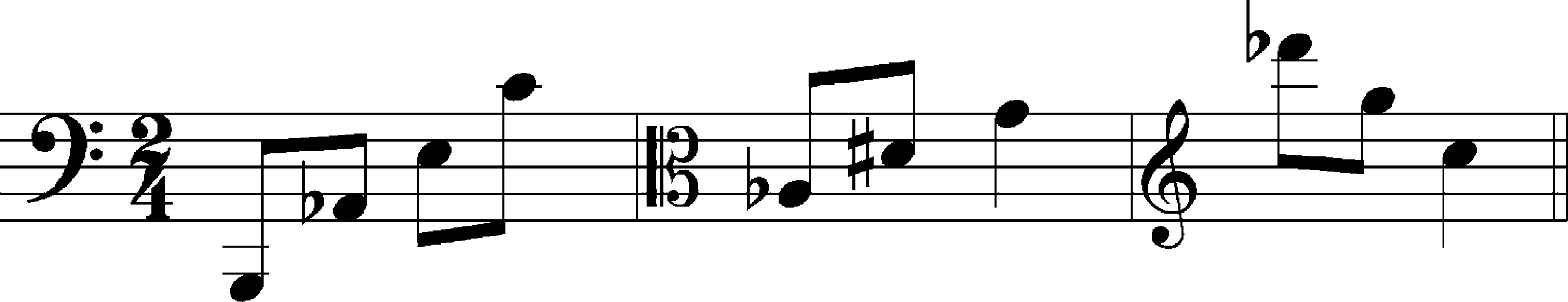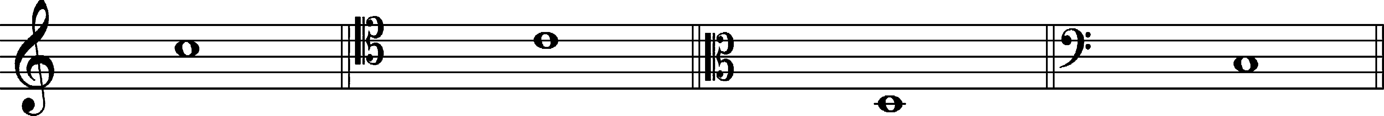 (1)高音谱表:a b 1 g 2 c 3 f 1