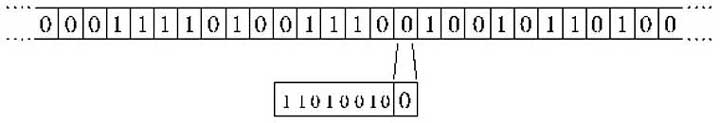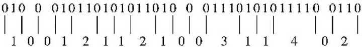……0000100101101010010110110101101011010 0011000……(有一个0已从我们以前的序列中略去)。