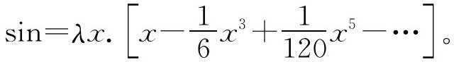 (不必为何以“函数”x可当做一个角度而忧虑。我们很快就会看到数可被当成函数的某种方法;而一个角度只是一个数。)迄今为止的一切的确是相当无聊的。让我们设想,记号“sin”还没被发明,但是我们熟悉sinx的级数展开表达式