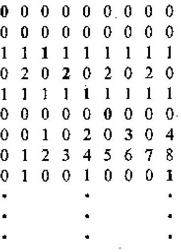 而考虑6和8的二进制表示,也就是分别为110和1000。这一对为6,8,用二进制记数法也就是110,1000扩展后在磁带上编码成: