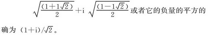 是负实数-a的平方根。(还有另一平方根-i×√a。)i本身又如何呢?它有平方根吗?它的确有,很容易检验量