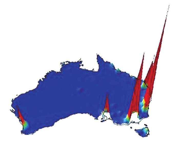 澳大利亚虽然地广人稀,经济却仍然集中在沿海少数城市。