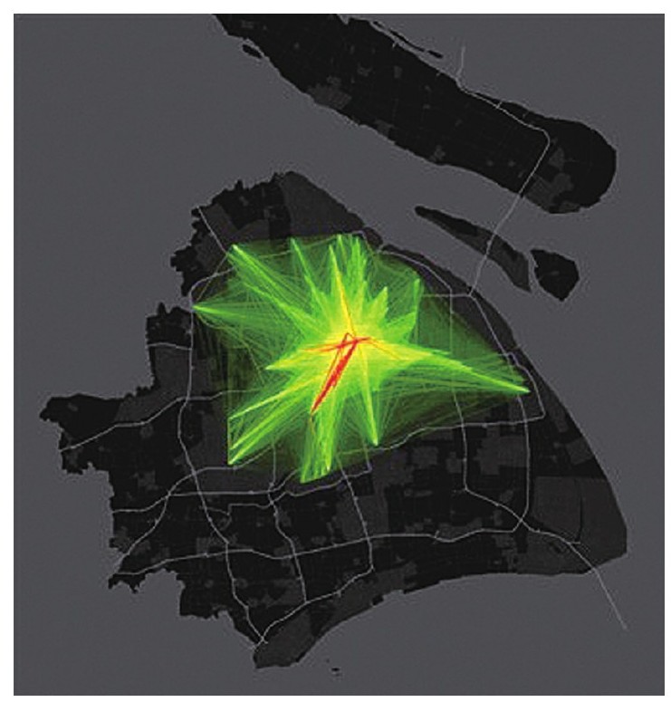 上海居民在市中心和市郊之间借助于地铁长途通勤是人口疏散和职住分离的必然结果。(图片来源:上海复旦规划与建筑设计研究院郭斌亮、汤舸、高路拓绘制)